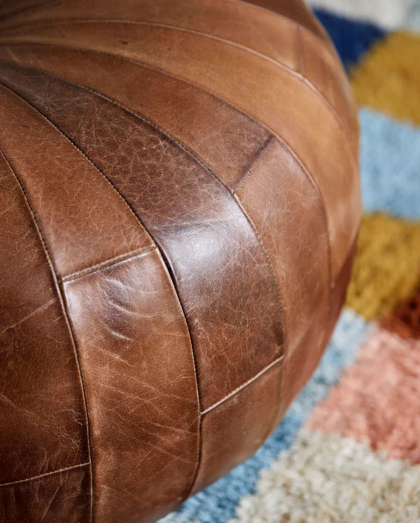 Rugby puffen fra Nordal er håndsydd med små biter av bøffelskinn i en antikk brun farge som gir et unikt og autentisk utseende. Bruk den som et ekstra sete, fotskammel eller som en stilig dekorativ detalj. Med en høyde på 39 cm er denne puffen både praktisk og et blikkfang. Det robuste skinnet sikrer langvarig holdbarhet og en vakker patina over tid, mens den antikkbrune fargen gir en varm og innbydende atmosfære. Puffen er fylt med slitesterkt PU-skum som gir god komfort og stabilitet.