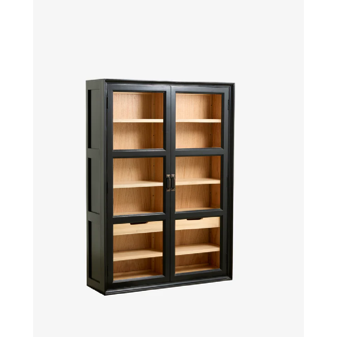 Det flotte VIVA-veggskapet blander funksjonalitet og eleganse i et tidløst design som passer inn i mange rom. Med en svartmalt gmelina-treramme og to glassdører skaper det en raffinert utstilling for favorittgjenstandene dine – enten det er keramikk, glass, krydder eller små dekorative gjenstander.